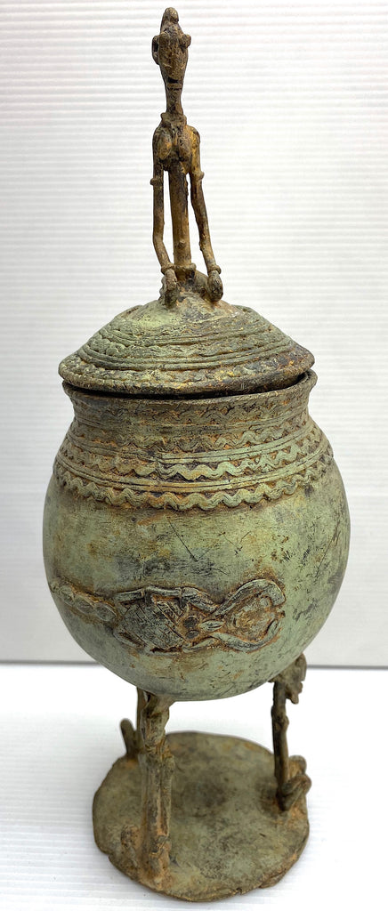 ❖0007❖ Collectible antique African Mali Dogon bronze tobacco pot ritual artifact