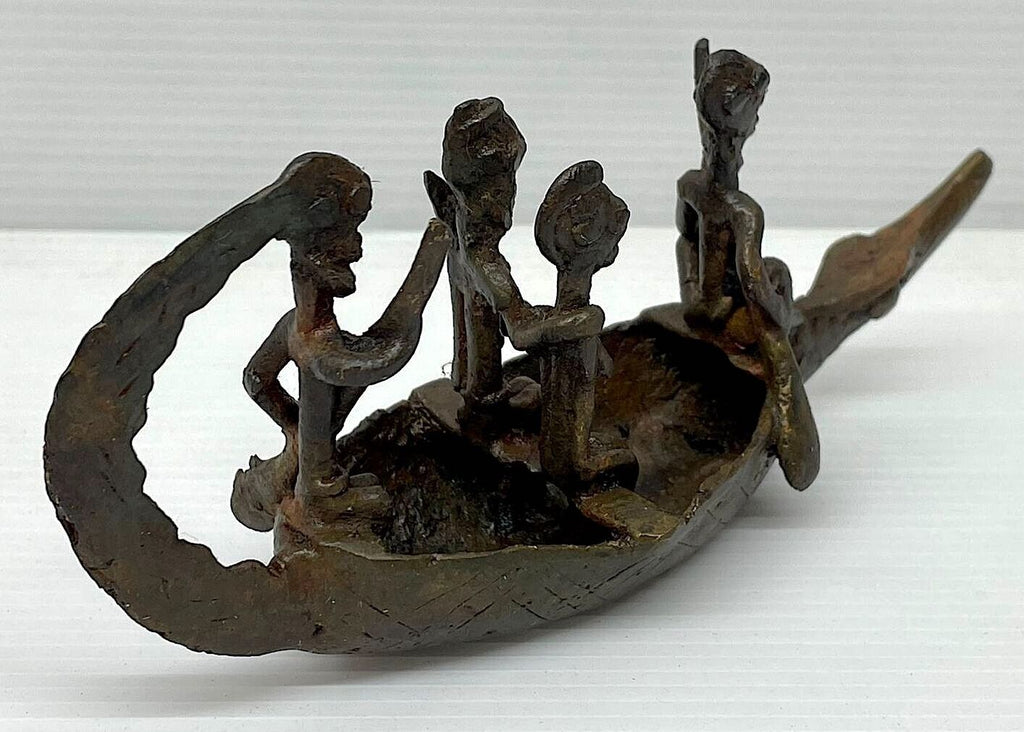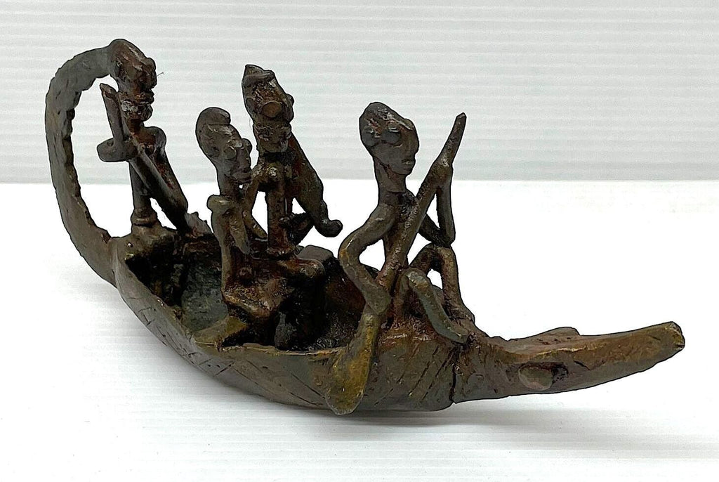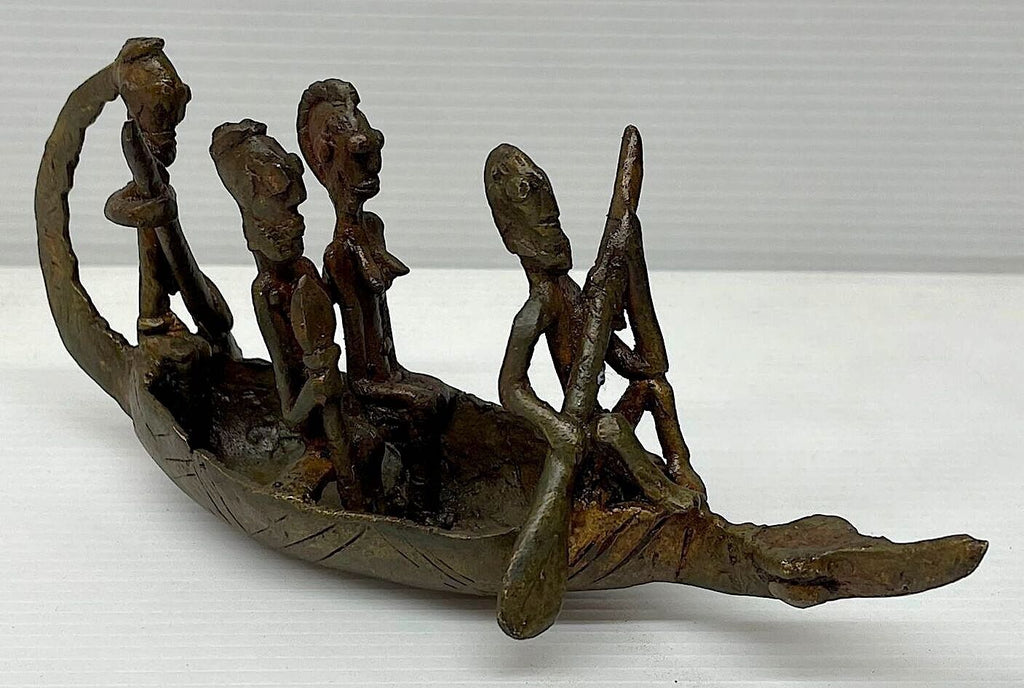 ❖0031❖ Collectible antique African Mali Dogon bronze crocodile spirit boat