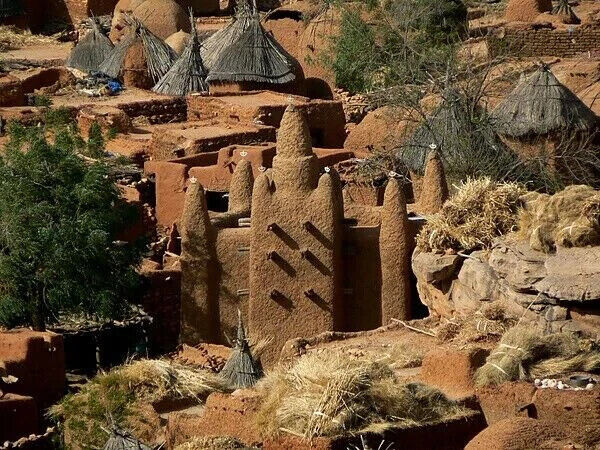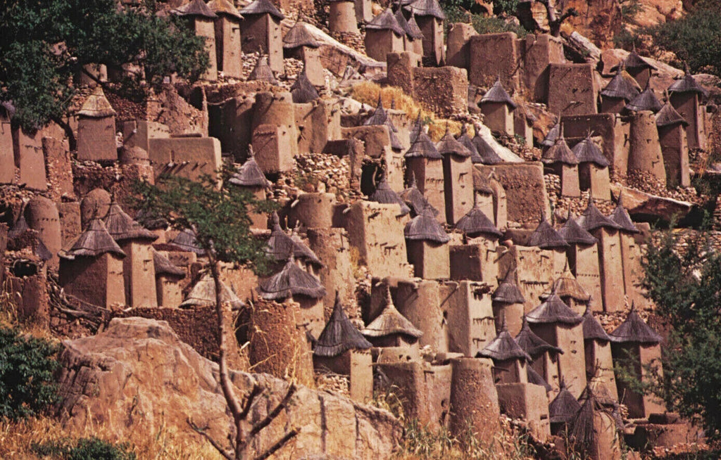 The Dogon are an ethnic group living in the central plateau region of Mali, in West Africa, south of the Niger bend, near the city of Bandiagara and in Burkina Faso. The population numbers between 400,000 and 800,000. They speak the Dogon languages, which are considered to constitute an independent branch of the Niger–Congo language family. The Dogon are best known for their religious traditions, their mask dances, wooden sculpture and their architecture. The principal Dogon area is bisected by the Bandiagara Escarpment, a sandstone cliff of up to 500 m (1,640.42 ft) high, stretching about 150 km (90 miles). To the southeast of the cliff, the sandy Séno-Gondo Plains are found, and northwest of the cliff are the Bandiagara Highlands. Historically, Dogon villages were established in the Bandiagara area in consequence of the Dogon people's collective refusal to convert to Islam a thousand years ago.