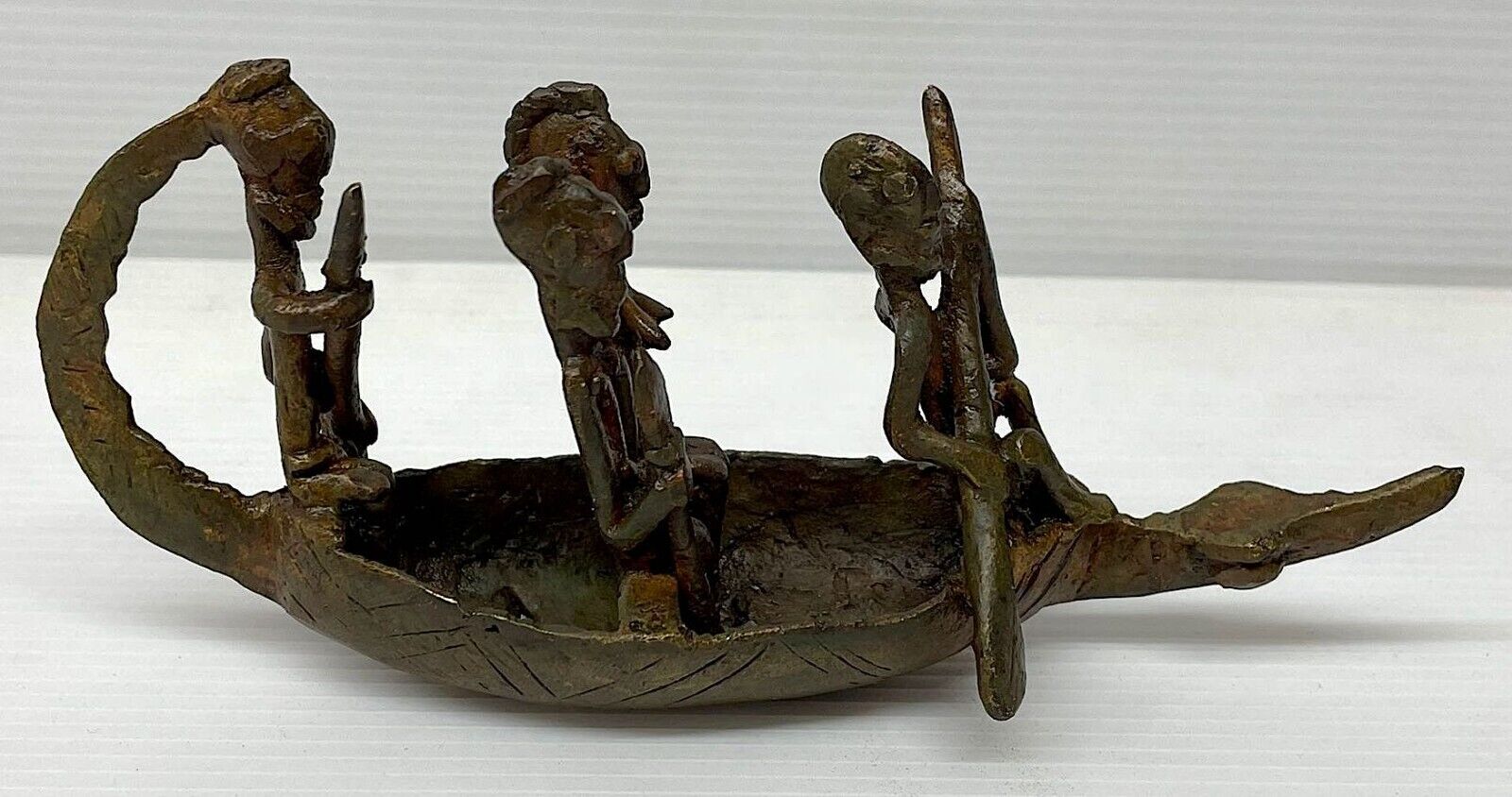 ❖0031❖ Collectible antique African Mali Dogon bronze crocodile spirit boat